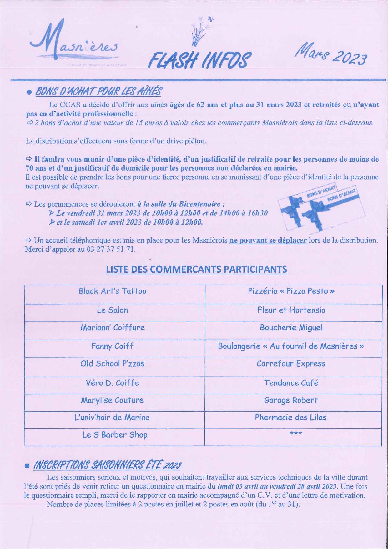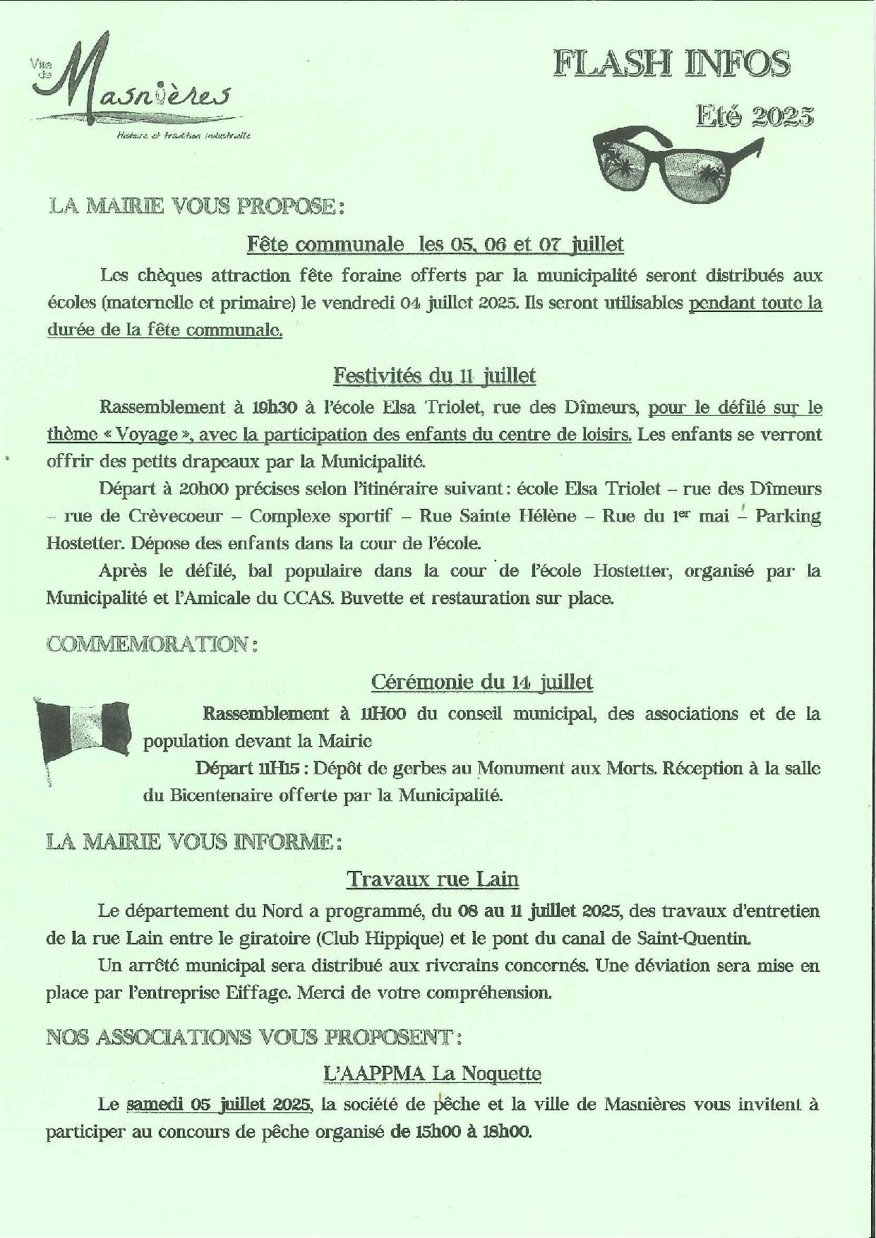 Implantation de nouvelles activités sur le territoire de la commune, développement de l’artisanat, création d’un nouveau Syndicat d’Initiative, tissu associatif important permettant à chacun de s’épanouir dans les activités de son choix, écoles, collège, commerces et services de santé… Masnières présente de réels atouts essentiels au bien vivre quotidien de chacun.