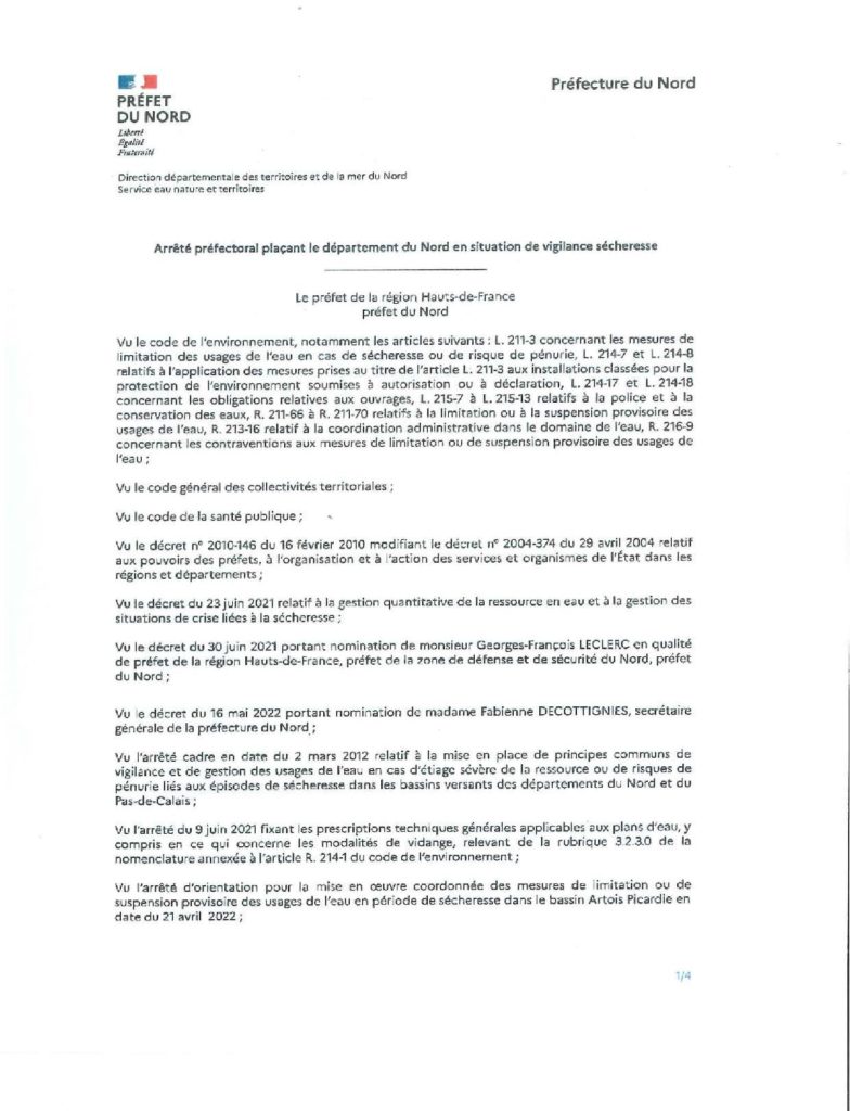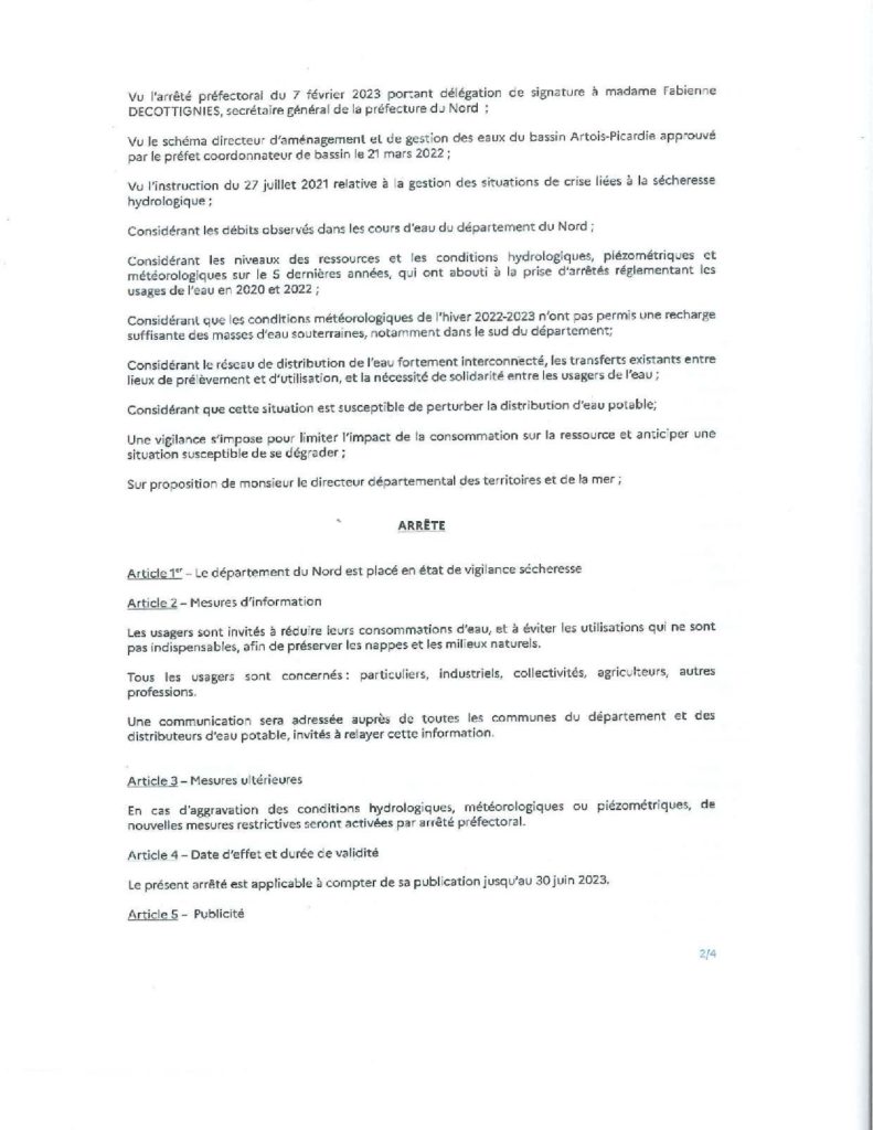 Arrêté préfectoral du 14 avril 2023 vigilance sécheresse