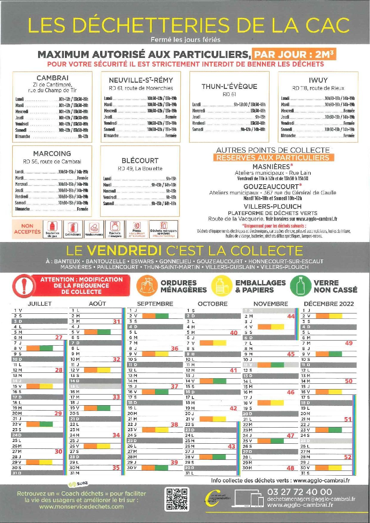 • INFORMATIONS SUR LES COLLECTES DES DECHETS MENAGERS A PARTIR DU 01/01/22 – MIS EN PLACE PAR LA COMMUNAUTE D’AGGLOMERATION DE CAMBRAI