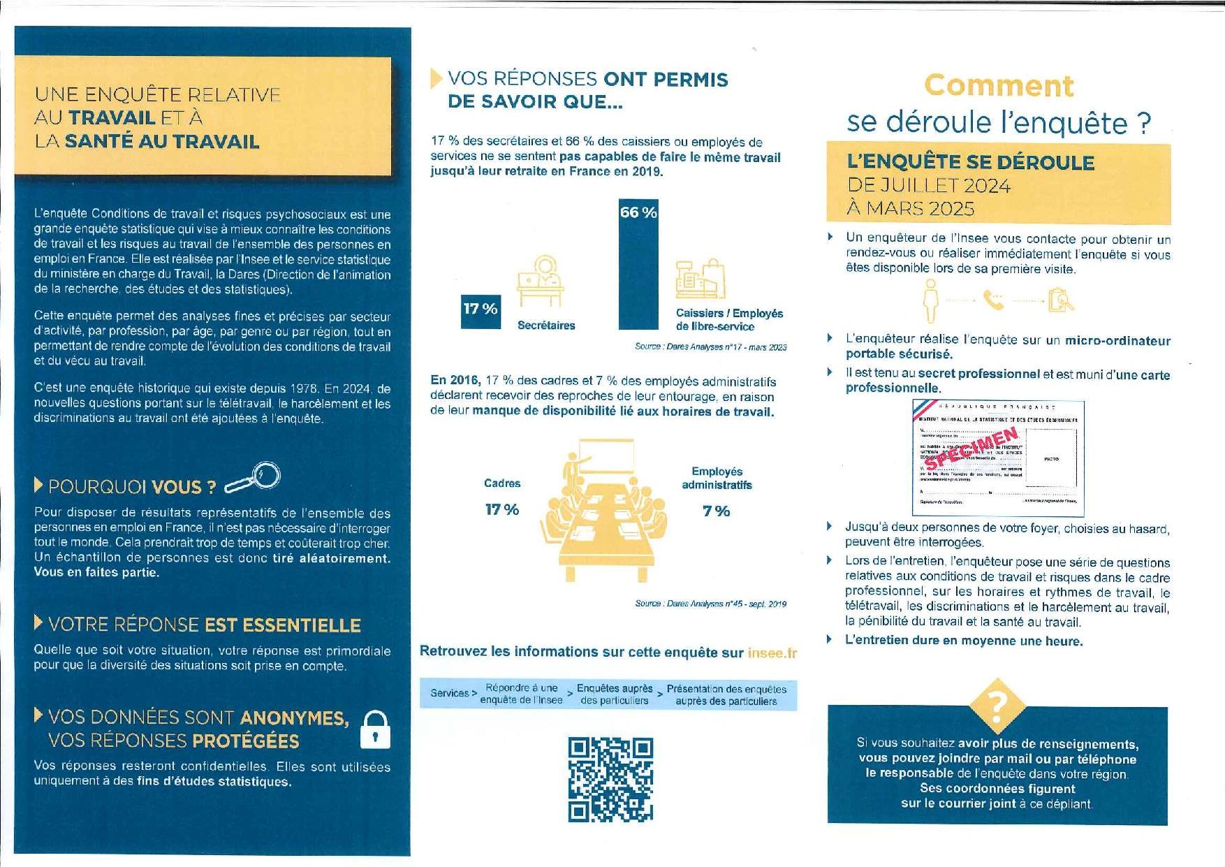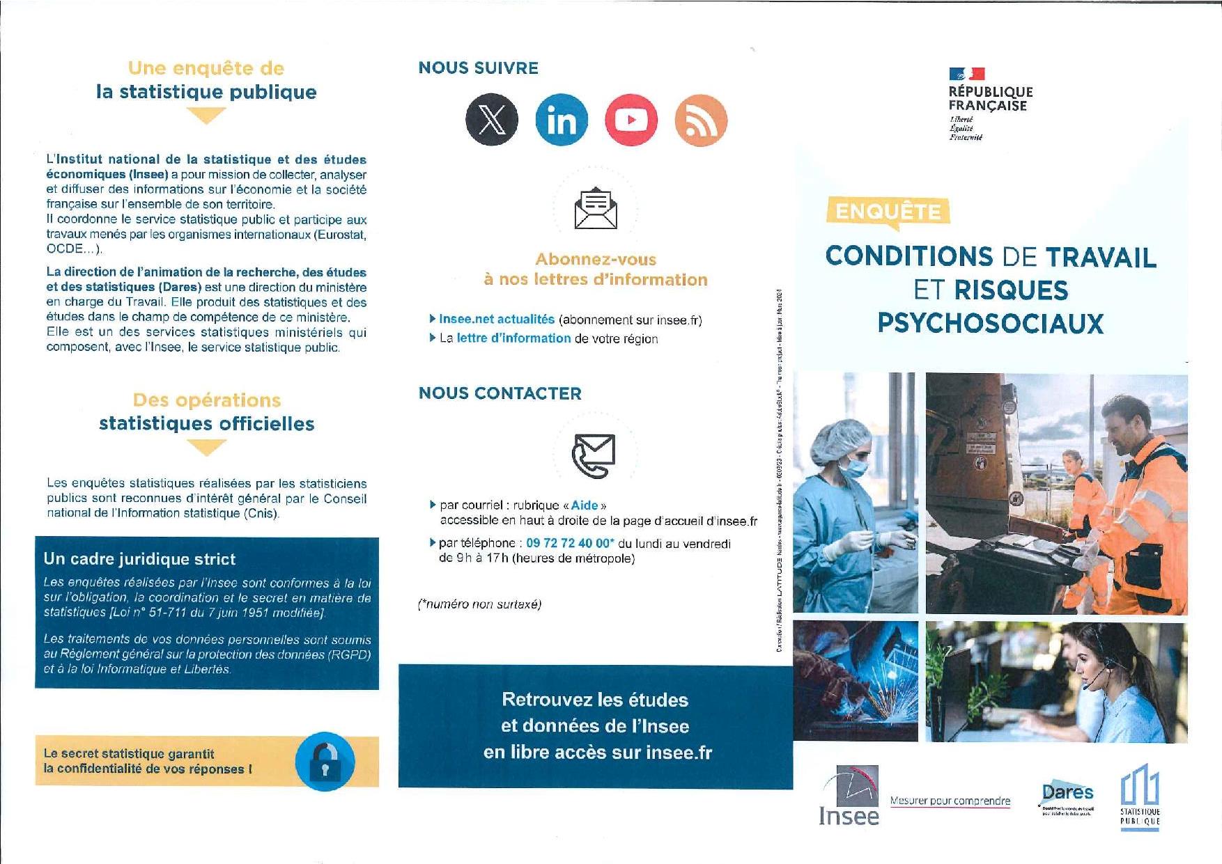 Enquête CONDITIONS DE TRAVAIL ET RISQUES PSYCHOSOCIAUX de juillet 2024 à mars 2025