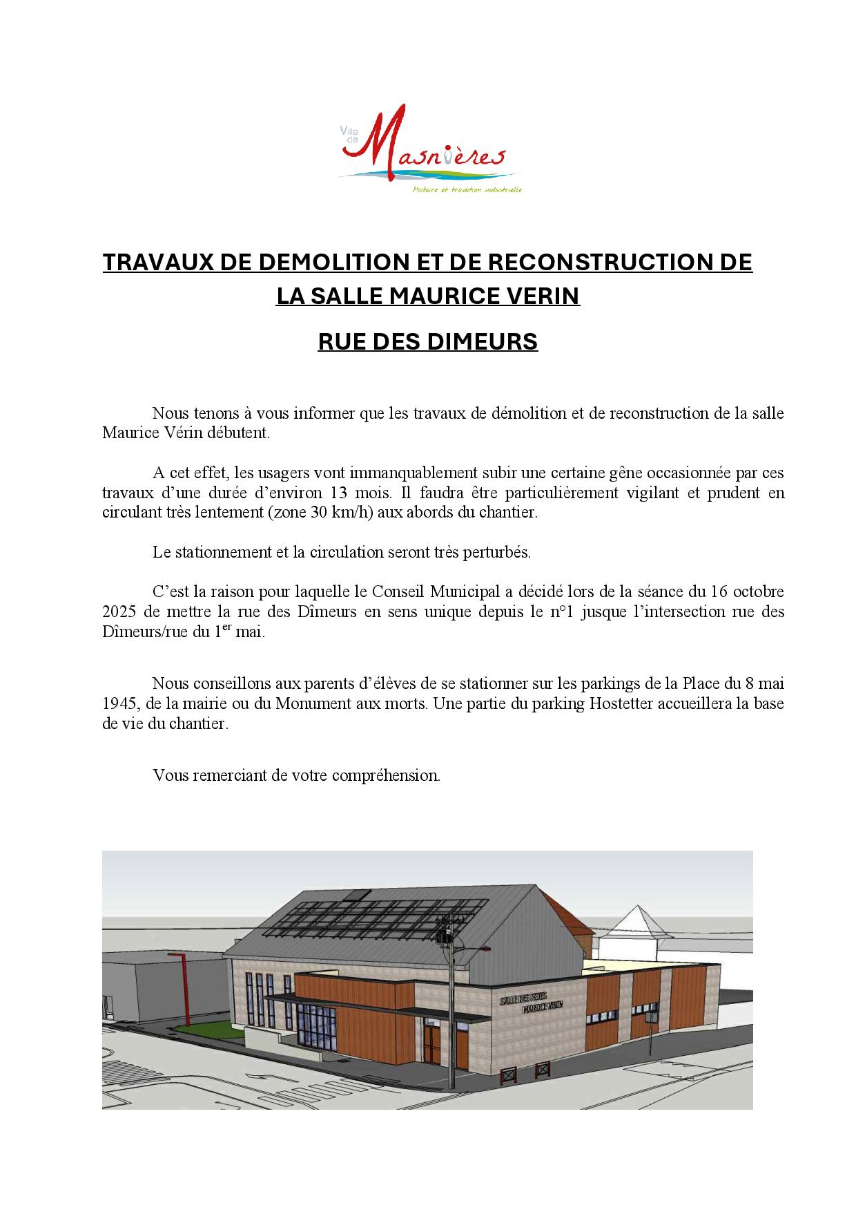 • TRAVAUX DE LA SALLE MAURICE VERIN – SECURISATION RUE DES DIMEURS