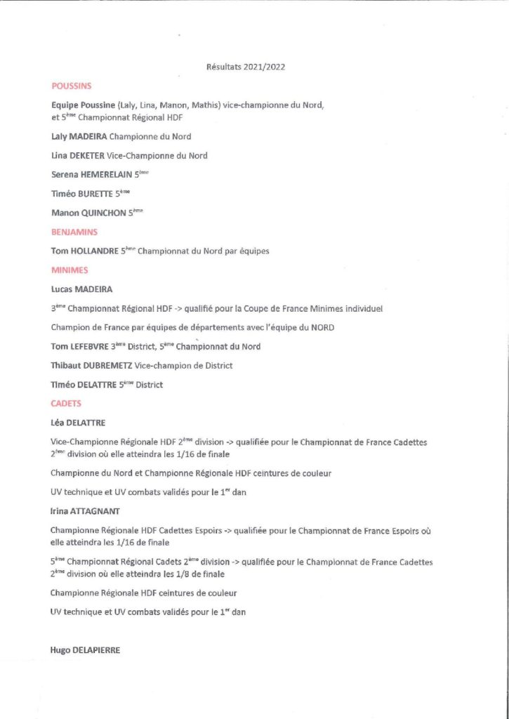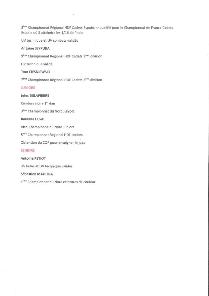 -Nathan VERCAUTEREN: 3ème championnat départemental combat, sélectif championnat régional et championnat de France, en attente de la prochaine compétition!