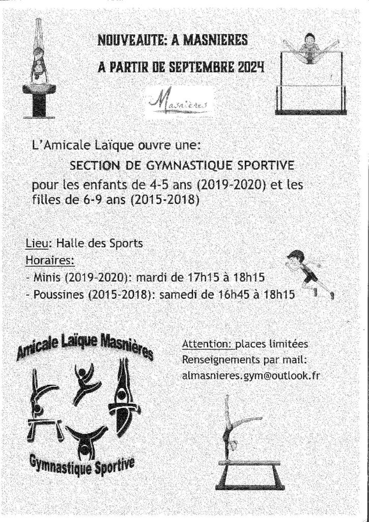 Renseignements par mail: almasnieres.gym@orange.fr