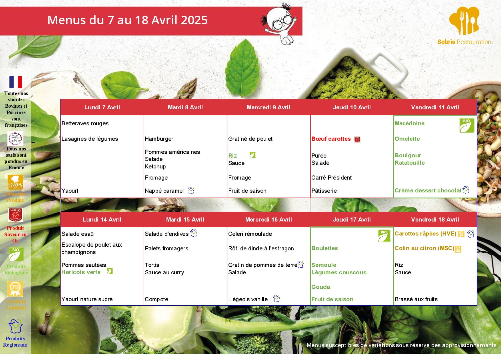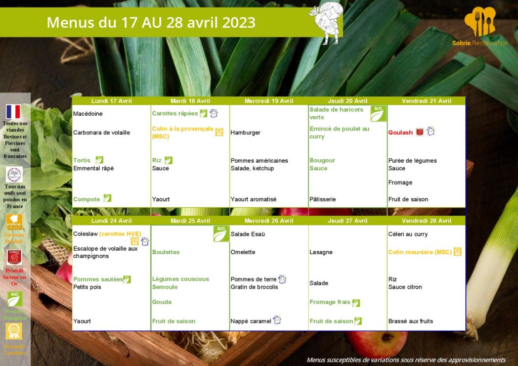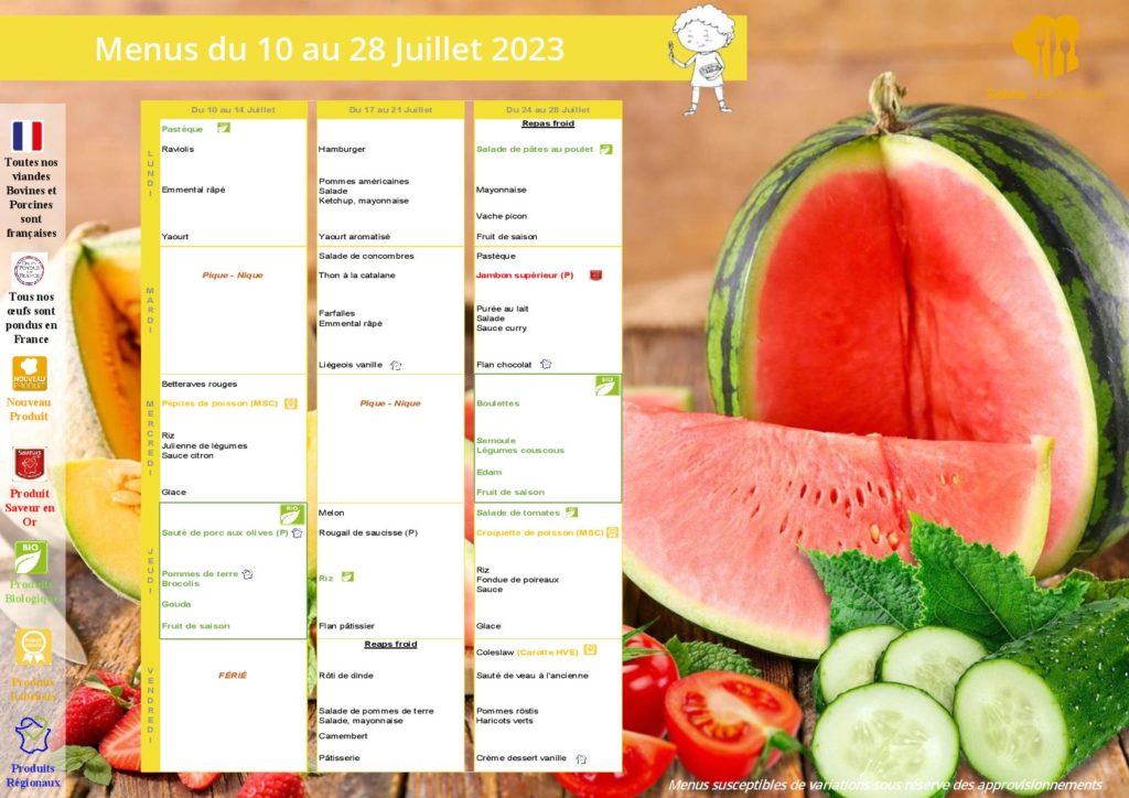 Menus pour le centre de loisirs d’octobre 2025