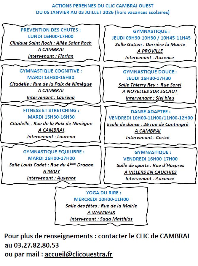 Pour plus de renseignements, nous contacter au 03 27 82 80 53 ou par mail accueil@clicouestra.fr