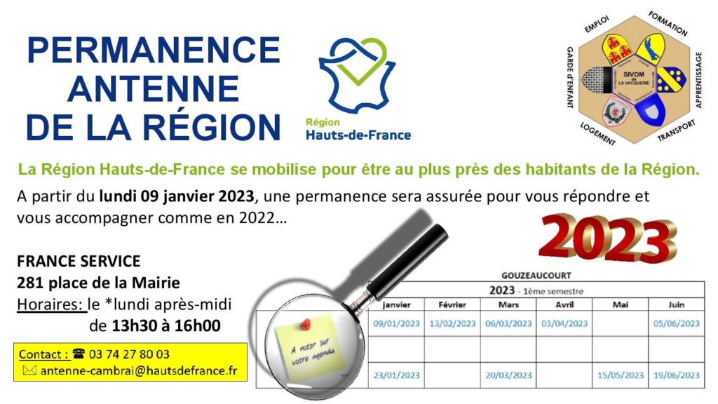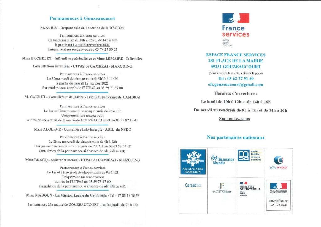 MAISON FRANCE SERVICES DE GOUZEAUCOURT – HORAIRES:
