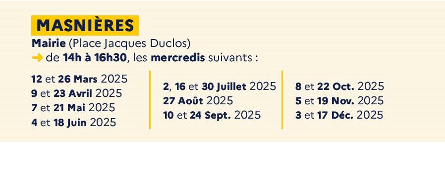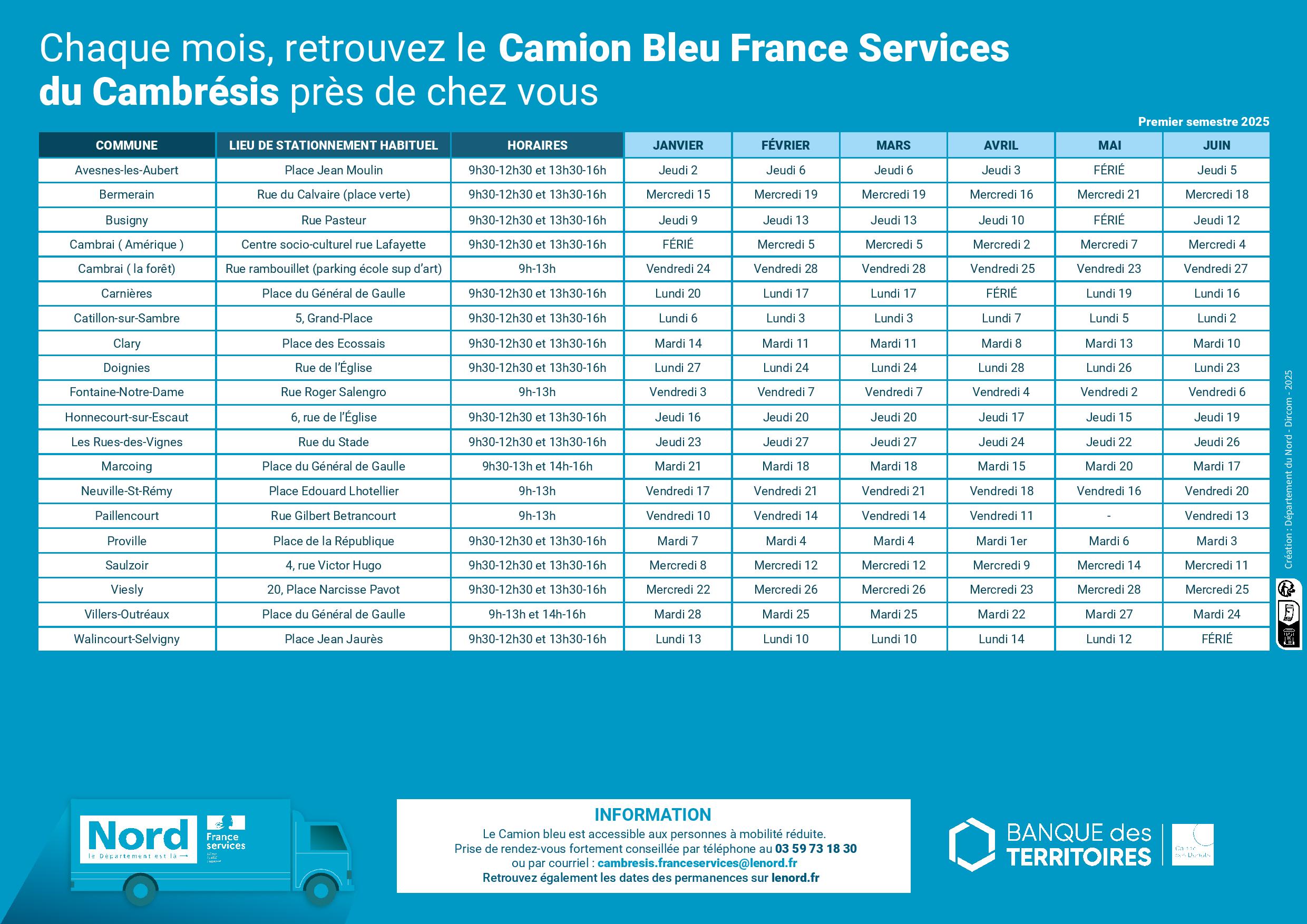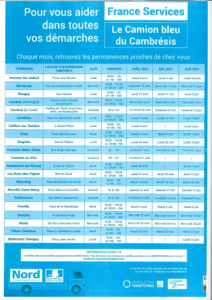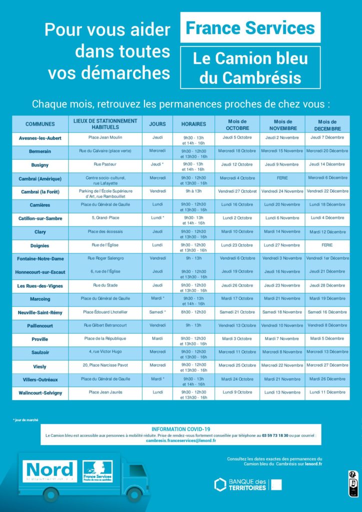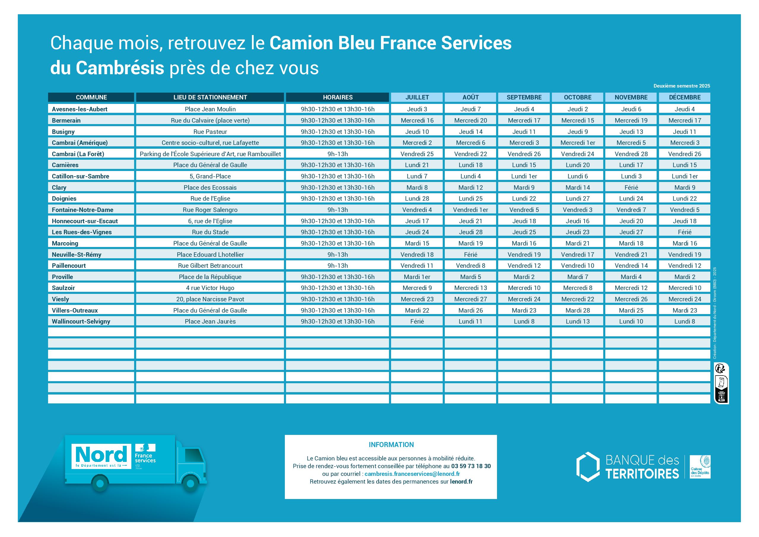 Pour rappel, le Camion bleu vient à votre rencontre pour vous orienter et vous accompagner dans vos démarches administratives du quotidien. Trois agents du Département vous aident et vous accompagnent pour toutes les formalités à accomplir.