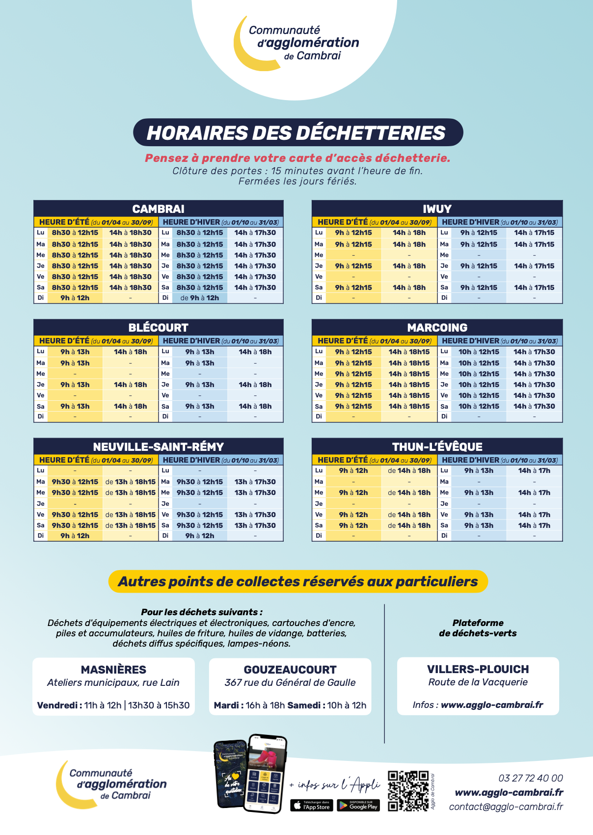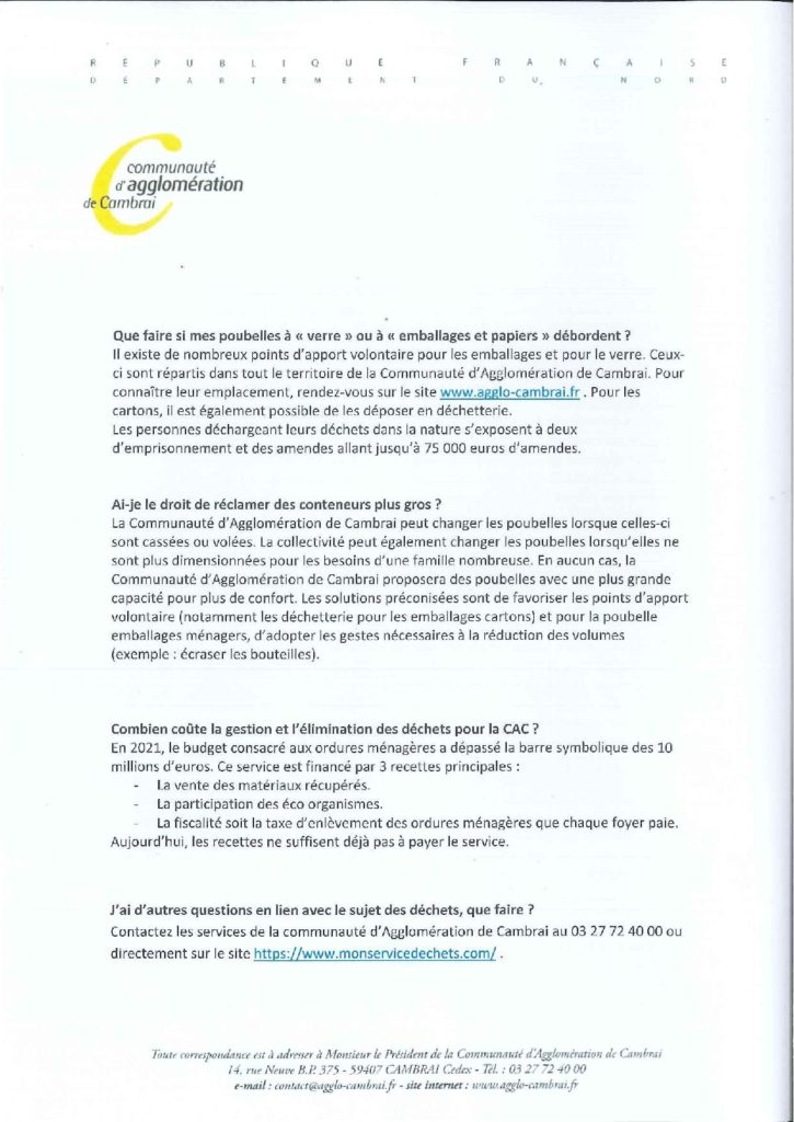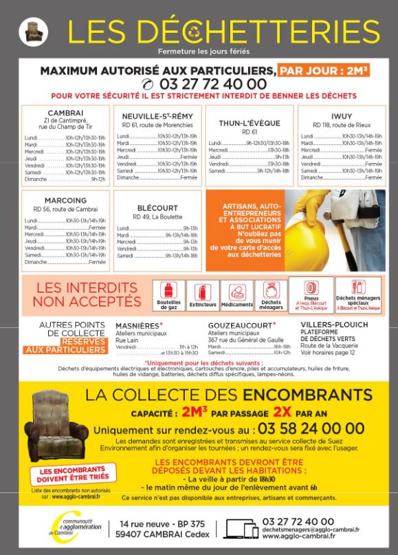 Services de la Communauté d’Agglomération de Cambrai: 03.27.72.40.00