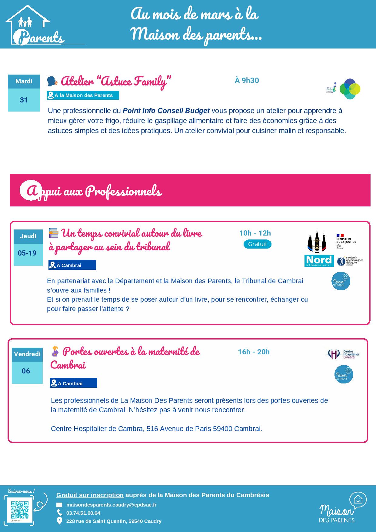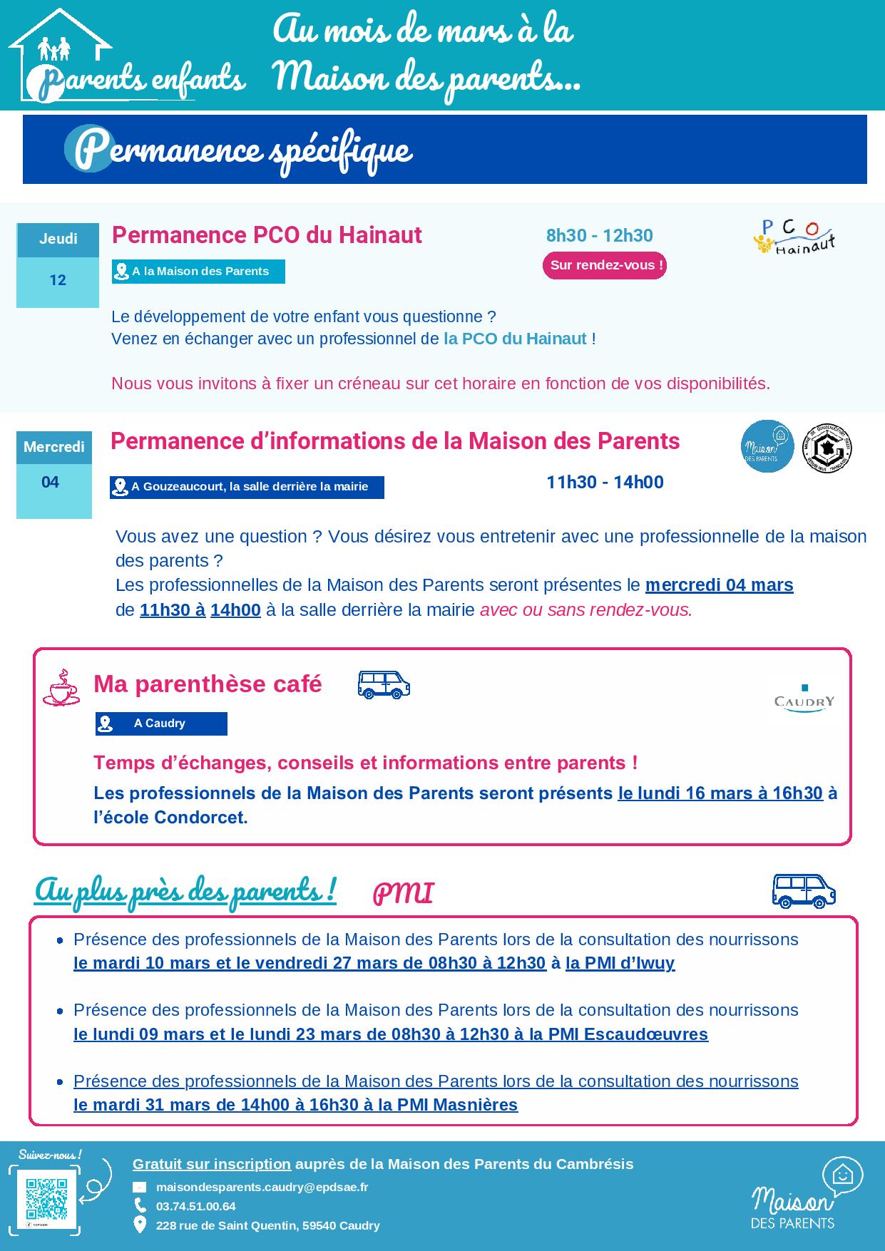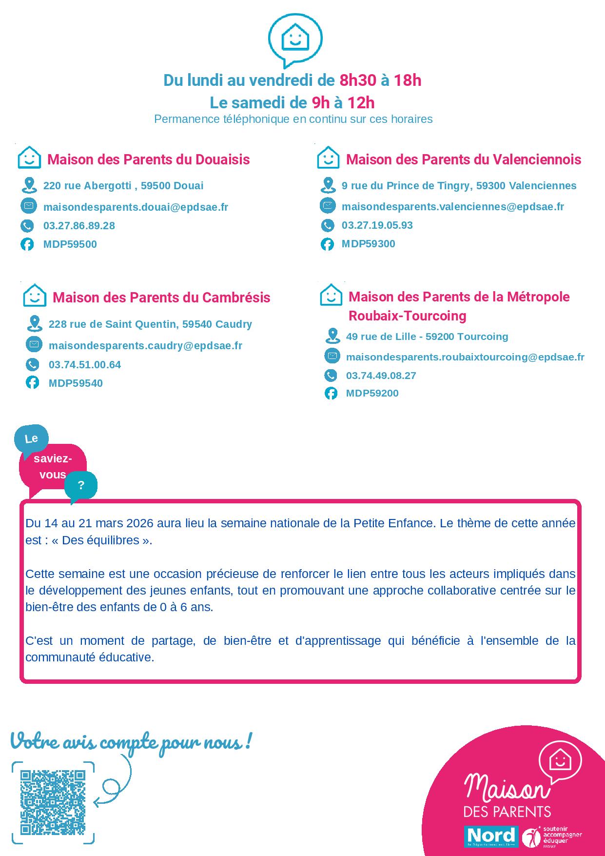 La première Maison des Parents a ouvert à Valenciennes en février 2019 avec une antenne à Denain. Celle du Cambrésis, ouverte depuis, se situe à Caudry au 228 rue de Saint-Quentin.